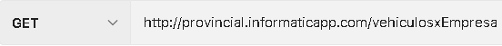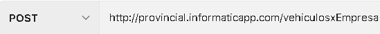 Esta sección contiene la información de la Gestión de Vehículos por Empresa, el cual se puede acceder a través del POSTMAN en la siguiente dirección: http://provincial.informaticapp.com/vehiculosxEmpresa