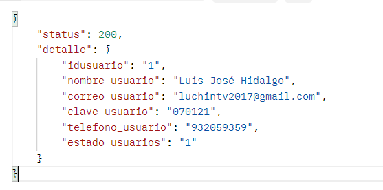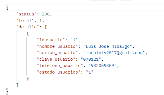 El resultado de la consulta de un usuario en específico debería ser como se muestra en la siguiente imagen: