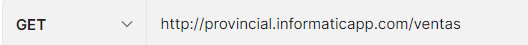 Esta sección contiene la información de la Gestión de Ventas, el cual se puede acceder a través del POSTMAN en la siguiente dirección: http://provincial.informaticapp.com/ventas