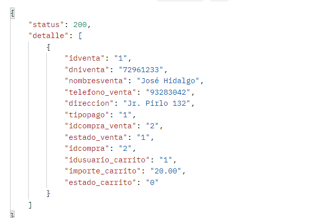 El resultado de la consulta de una venta en específico debería ser como se muestra en la siguiente imagen:
